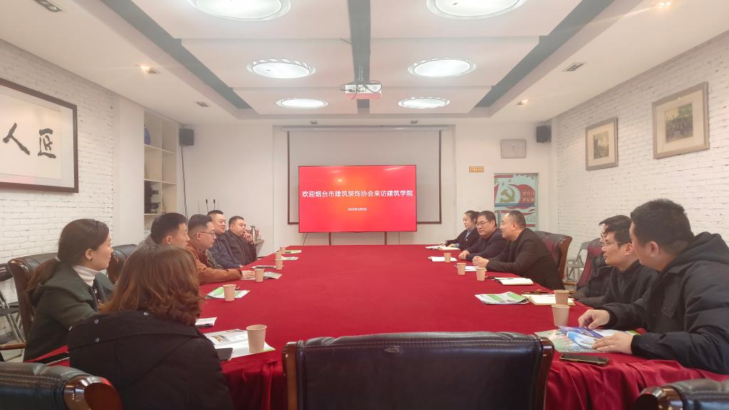 烟台市建筑装饰协会秘书长何峰、烟台市建筑装饰协会设计委主任杨丰国,烟台汉象装饰工程有限公司、烟台市寅午戌装饰工程有限公司、烟台华杰城市人家装饰有限公司、烟台柒城装饰有限公司、烟台蓝海盛饰建筑装饰工程有限公司、万华生态司空新家装和万华生态科技股份有限公司等企业负责人一同来访。学院领导班子成员,负责就业工作的辅导员、专业导师参加交流座谈。