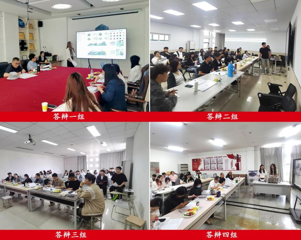 院长助理王磊主持,42组毕业设计作品按主题分为4个小组展示。答辩前,评审团队参观了以“生态齐鲁—山东城乡健康人居环境设计”为主题的毕业设计展览,对作品聚焦乡村聚落、城市街区、工业遗址等多元人居环境单元,深入剖析地域生态特征与发展需求,通过创新设计探索可持续发展路径的实践成果给予充分肯定。