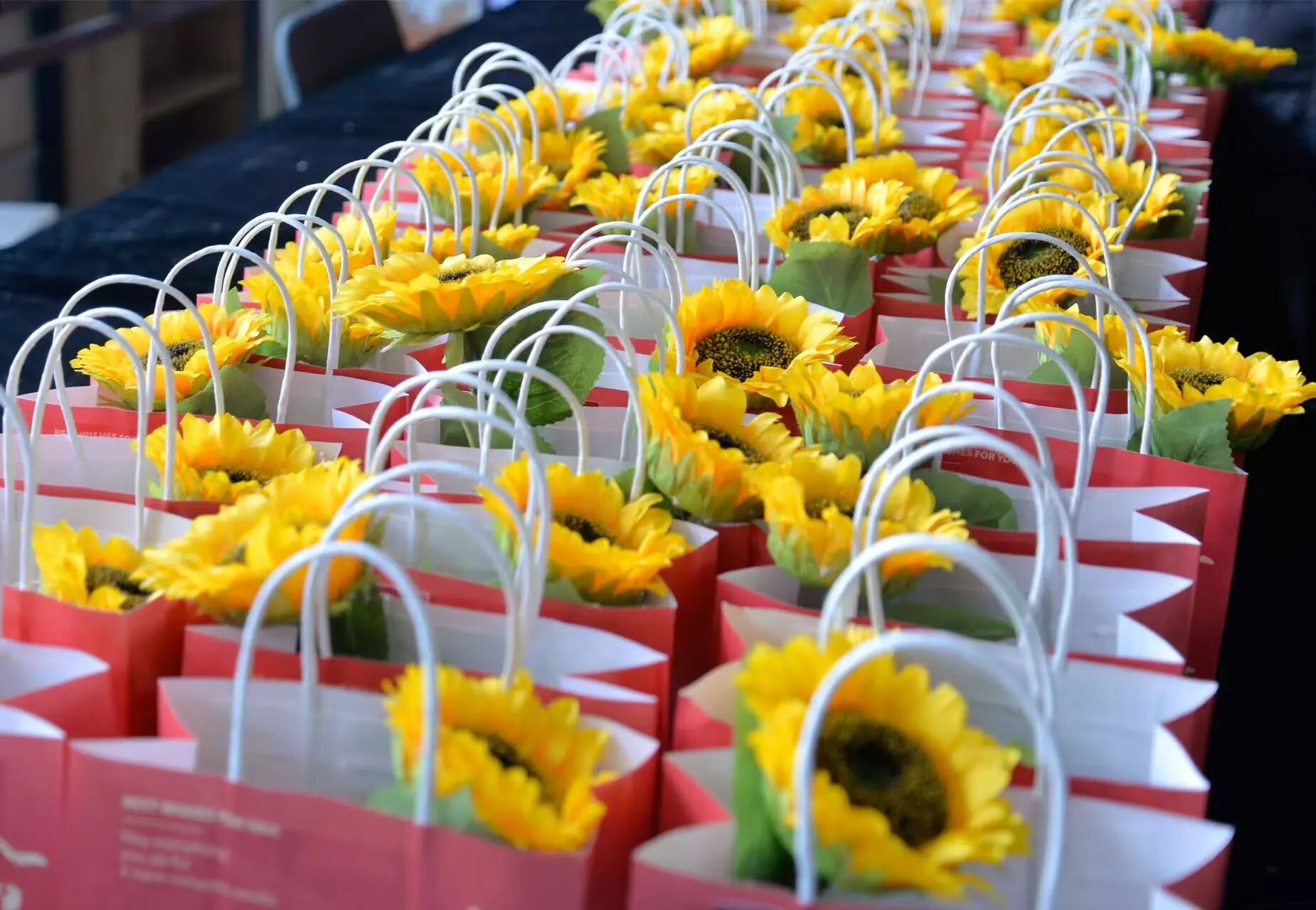 礼包里面不仅有考试用品套装助力学子从容应考、暖宝宝驱散冬日寒意、士力架补充满满能量,还有手作向日葵承载着黑料网