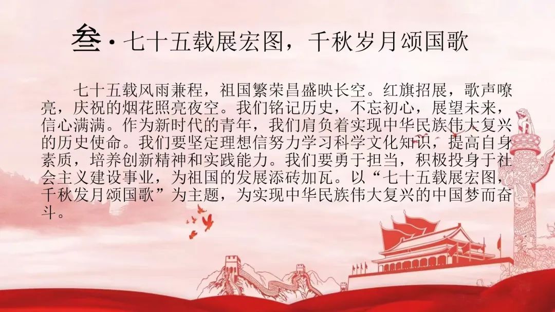 *征文类共设有四个主题,分别是“吾以丹心照汗青,旦将赤诚铸华夏”“庚续华夏篇章,共书人类光芒”“七十五载展宏图,千秋岁月颂国歌”“建创新章筑梦想,匠心筑梦展风华”。