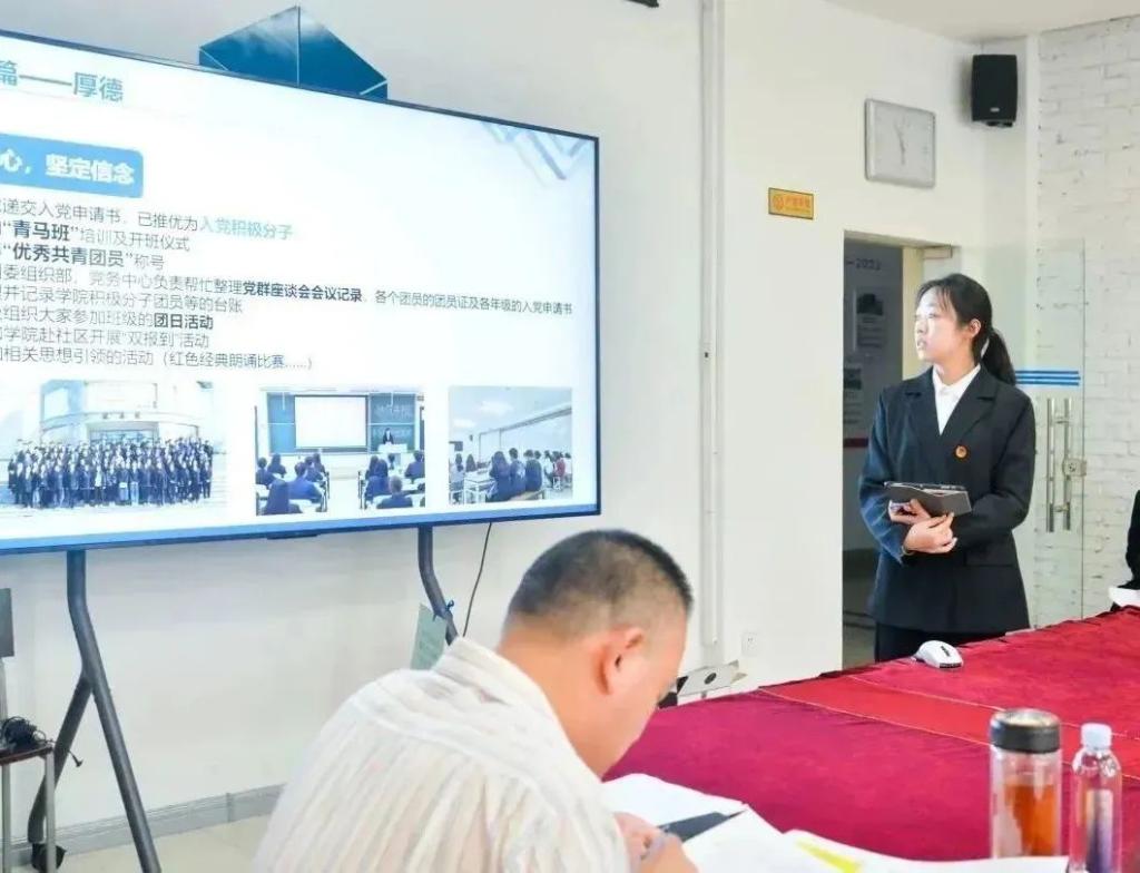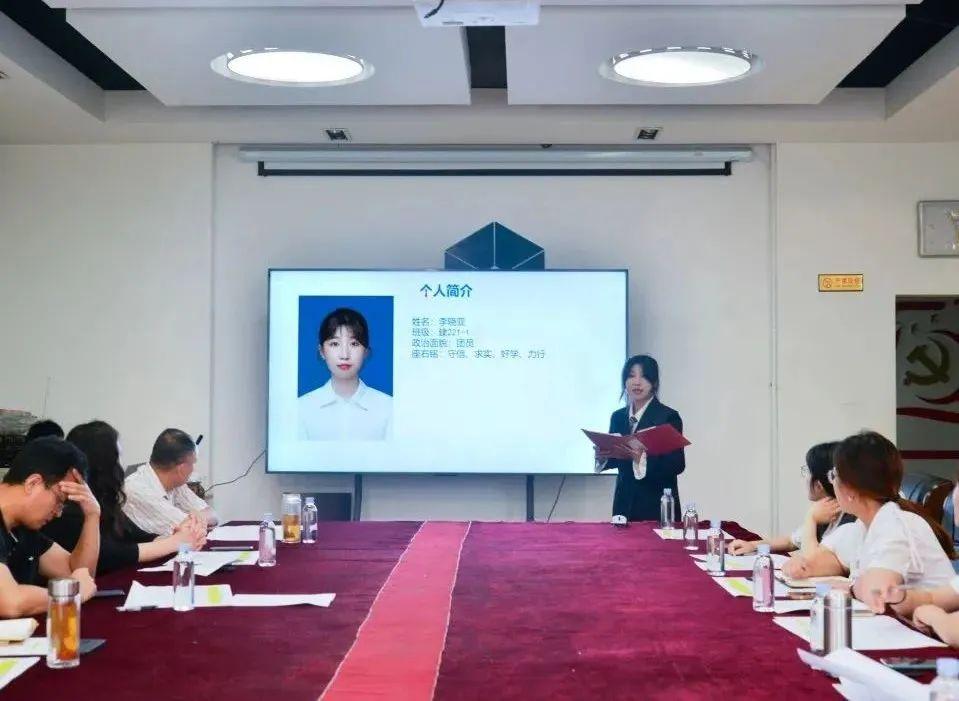 经前期个人申报和学院初审,共有12名候选人入围答辩环节。学生代表张雨晴主持会议,参加答辩的各位同学按照抽签顺序进行自我展示及现场答辩。