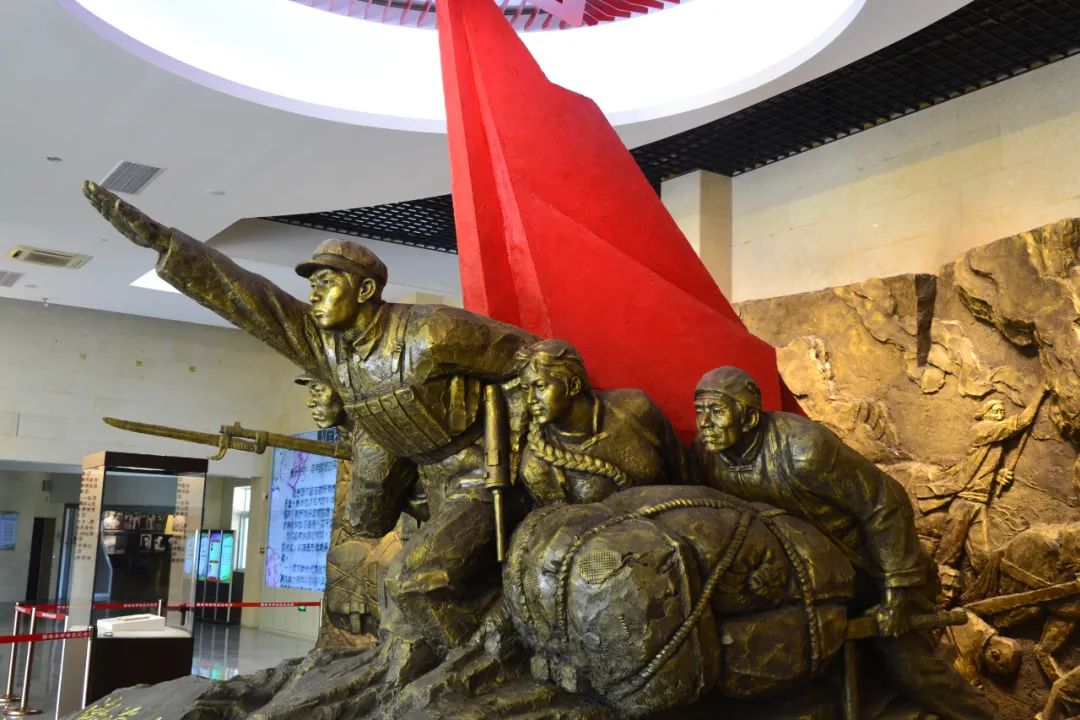 其中纪念馆分为序厅、星火初燃、烽火燎原、烈火铁流、渤海英杰等五个展厅。步入序厅,沿序厅而行,即进入“星火初燃”展厅。首先映入眼帘的是我国至今发现最早的中译本《共产党宣言》(1920年8月份出版)。本厅主要向人们展示1921年7月至1937年7月,中国共产党在这一地区开展革命活动的历史,陈列着有关山东省第一个农村基层党支部的建立、中国北方爆发得最早的农民武装起义、周村缫丝业工人大罢工、博兴农民武装暴动等有关历史史料、革命历史人物照片及文物,厅内的农民武装暴动大型群雕栩栩如生,意境内涵深远。