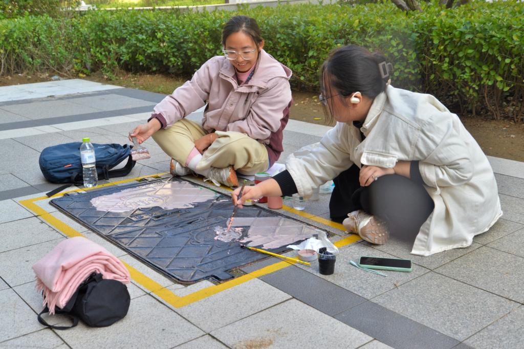 学生党员、青年学生志愿者赴凤凰壹号院社区开展画井盖双报道志愿服务活动。活动伊始,征集井盖涂鸦初稿,同学们积极报名参与,运用丰富的想象力,创作出了精彩的作品。