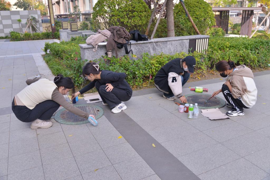 同学们根据审定的初稿进行绘制,五颜六色的线条和生动逼真的画面让黯淡的井盖变成了一幅幅画,一井一画,一步一景。在同学们的巧手下,原本毫不起眼的井盖焕发出独特的色彩,展现出别样的艺术魅力。这些彩绘的变成了社区一道靓丽的风景线,给居民生活增添了艺术气息。