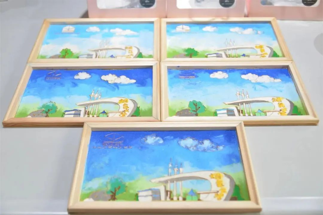 绘画、上胶、掐丝、剪丝、着色,用金丝细细勾勒出轮廓,用釉料逐步填充色彩。看似普通的金丝,在一番弯折处理后,构成一个个精巧细致的图案。捋丝、沾丝、点蓝填砂、淋膜,一幅幅掐丝珐琅画,在老师们指尖的流转间,逐渐显现各种美丽的样貌。