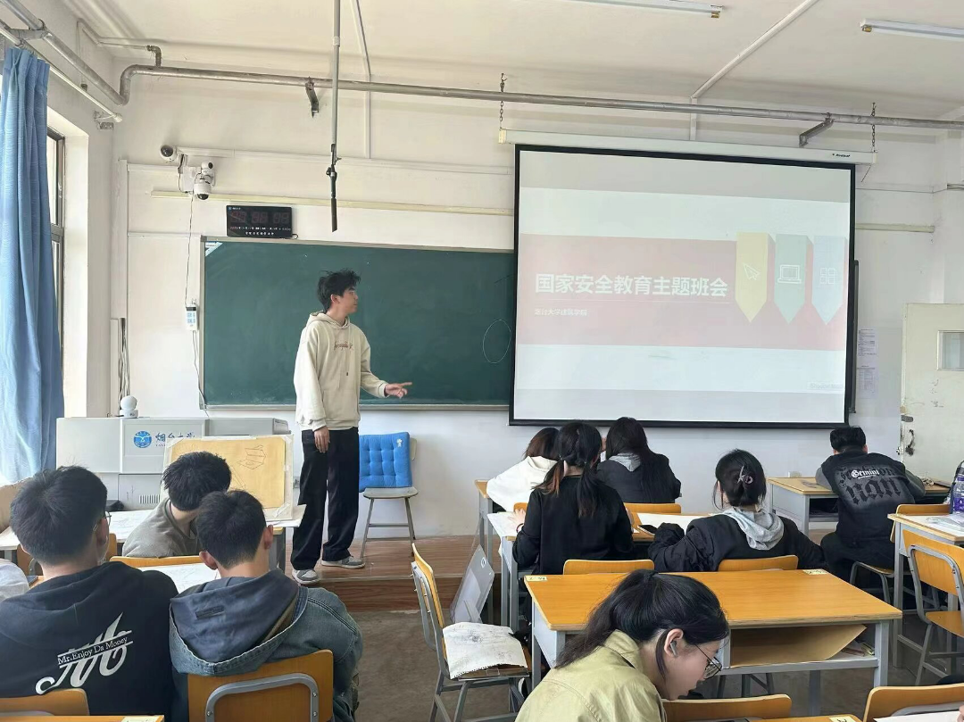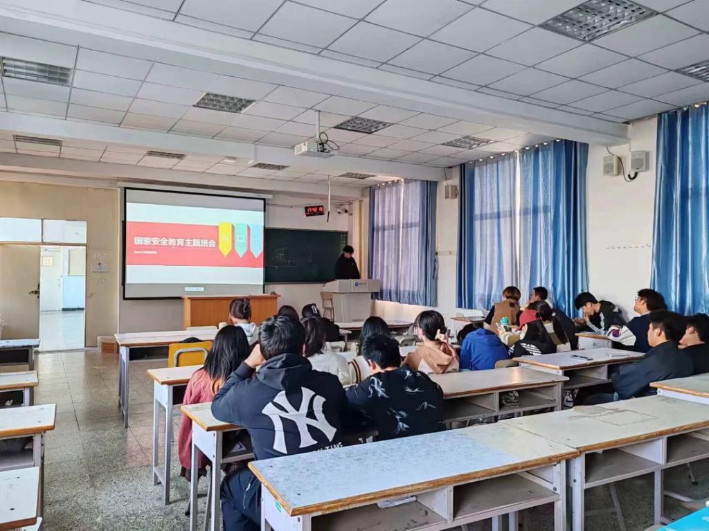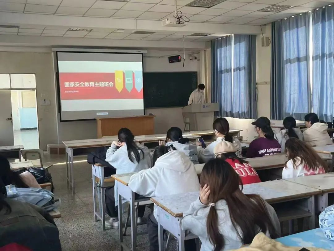 积极响应学校关于第九个全民国家安全日安排,组织学生开展以“国家安全教育”为主题的主题班会和团日活动,观看“千万高校学生同上一堂国家安全教育课”主题公开课,通过专题学习,鼓励师生积极参与,扩大覆盖面、增强实效性,切实引导师生提升国家安全意识和素养,为维护国家主权、安全、发展利益挺膺担当。