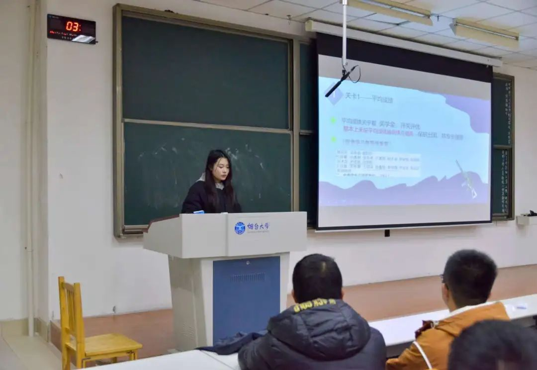 建224班马萍萍结合自身经历,分享了自己对于专业的热爱,鼓励同学们要热爱专业,积极向党组织靠拢,多参加竞赛,收获丰富多彩的校园生活,随后分享了含金量高的奖学金、竞赛项目,帮助学弟学妹们明确学习与努力的方向。建234班尹佳颖用“金铲铲”游戏类比学习,围绕成绩、竞赛、综测、丰富履历等方面分享了学习态度、时间管理、应考策略的经验。